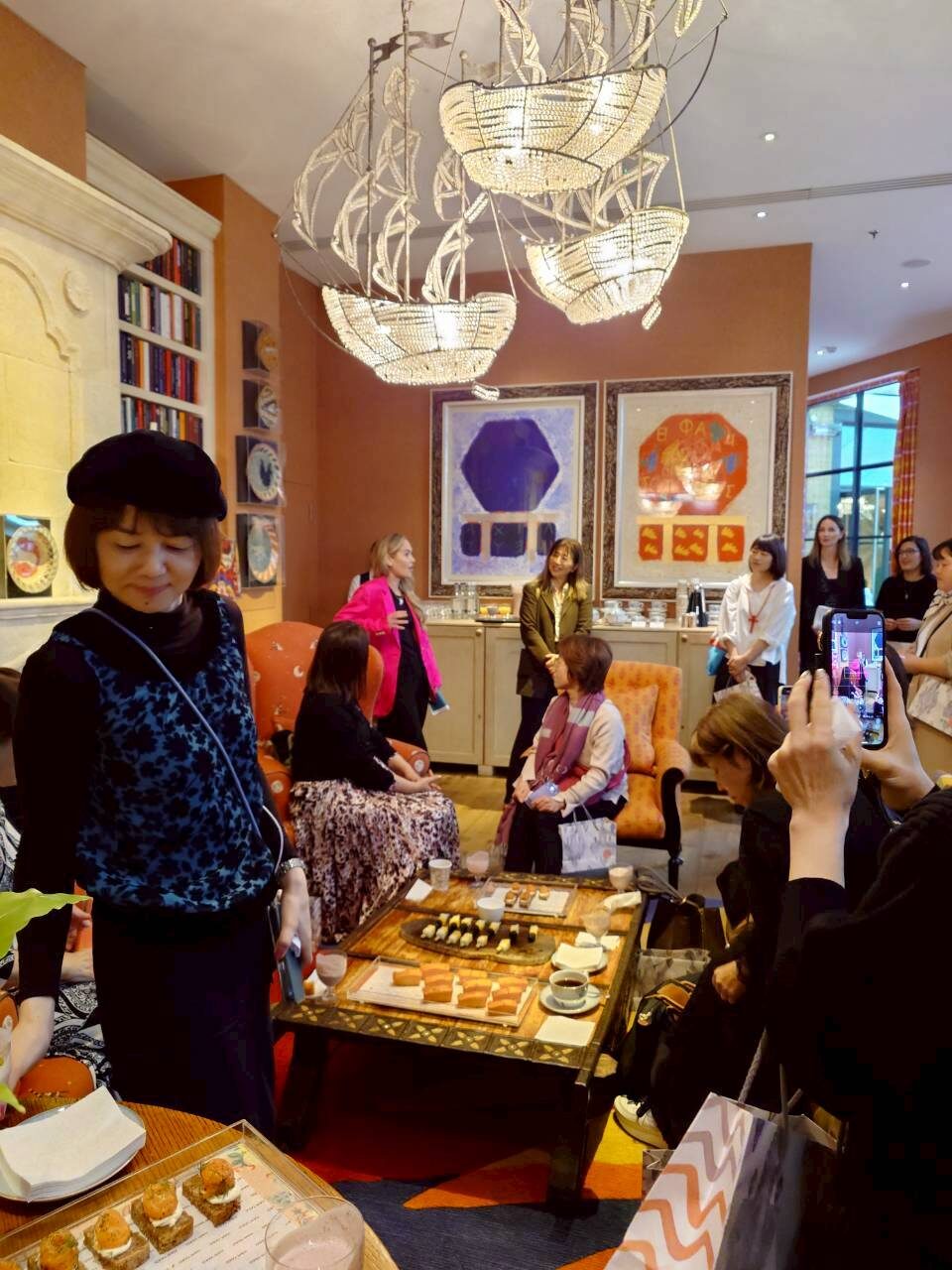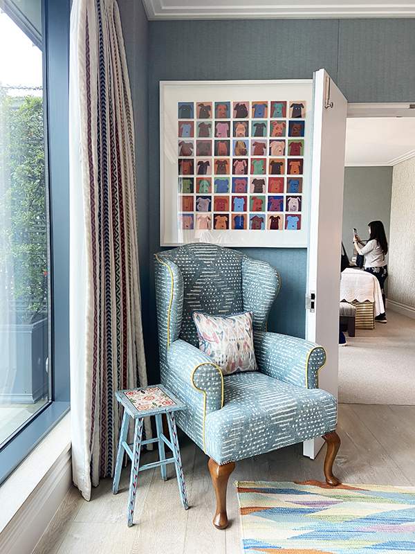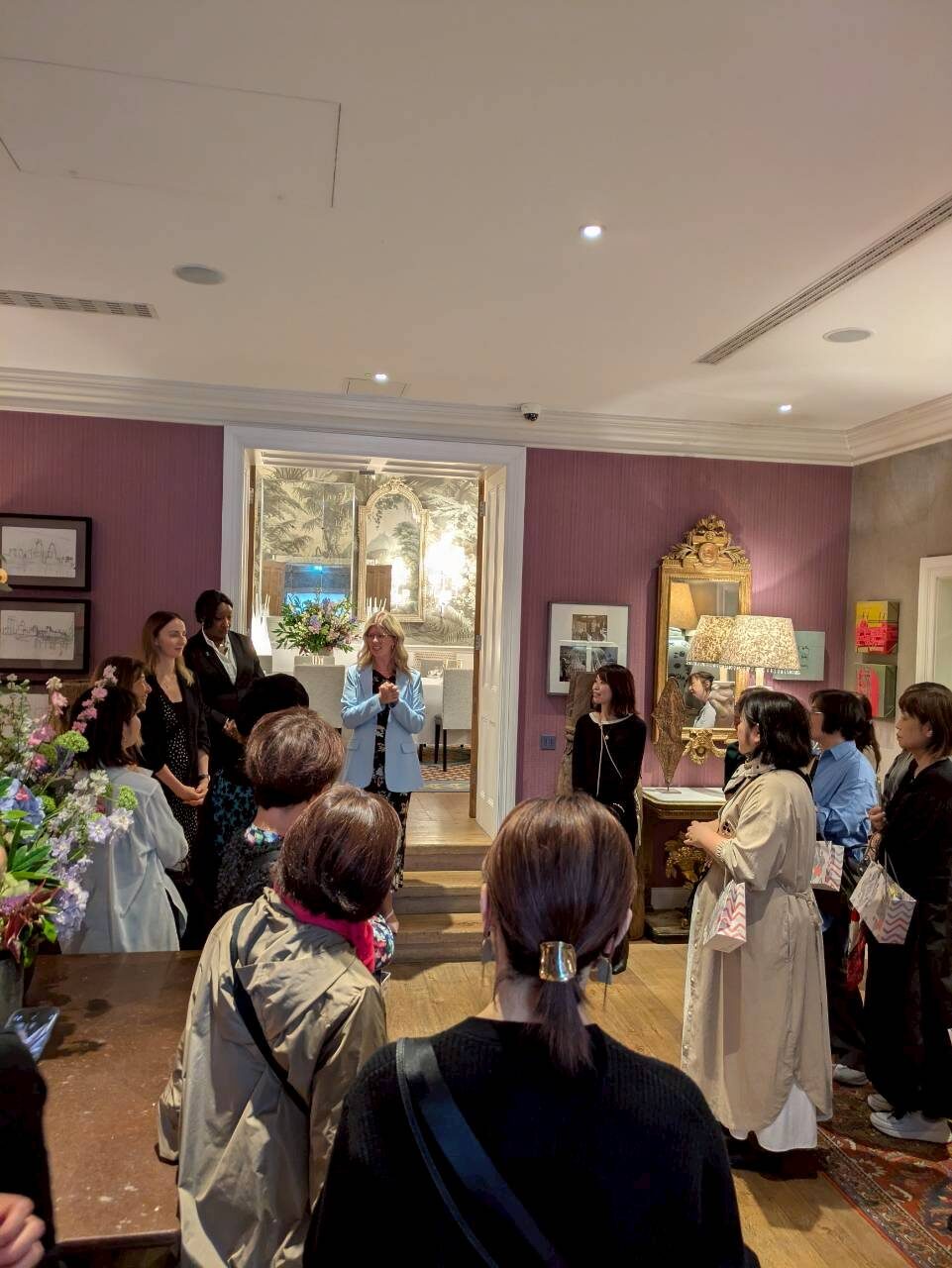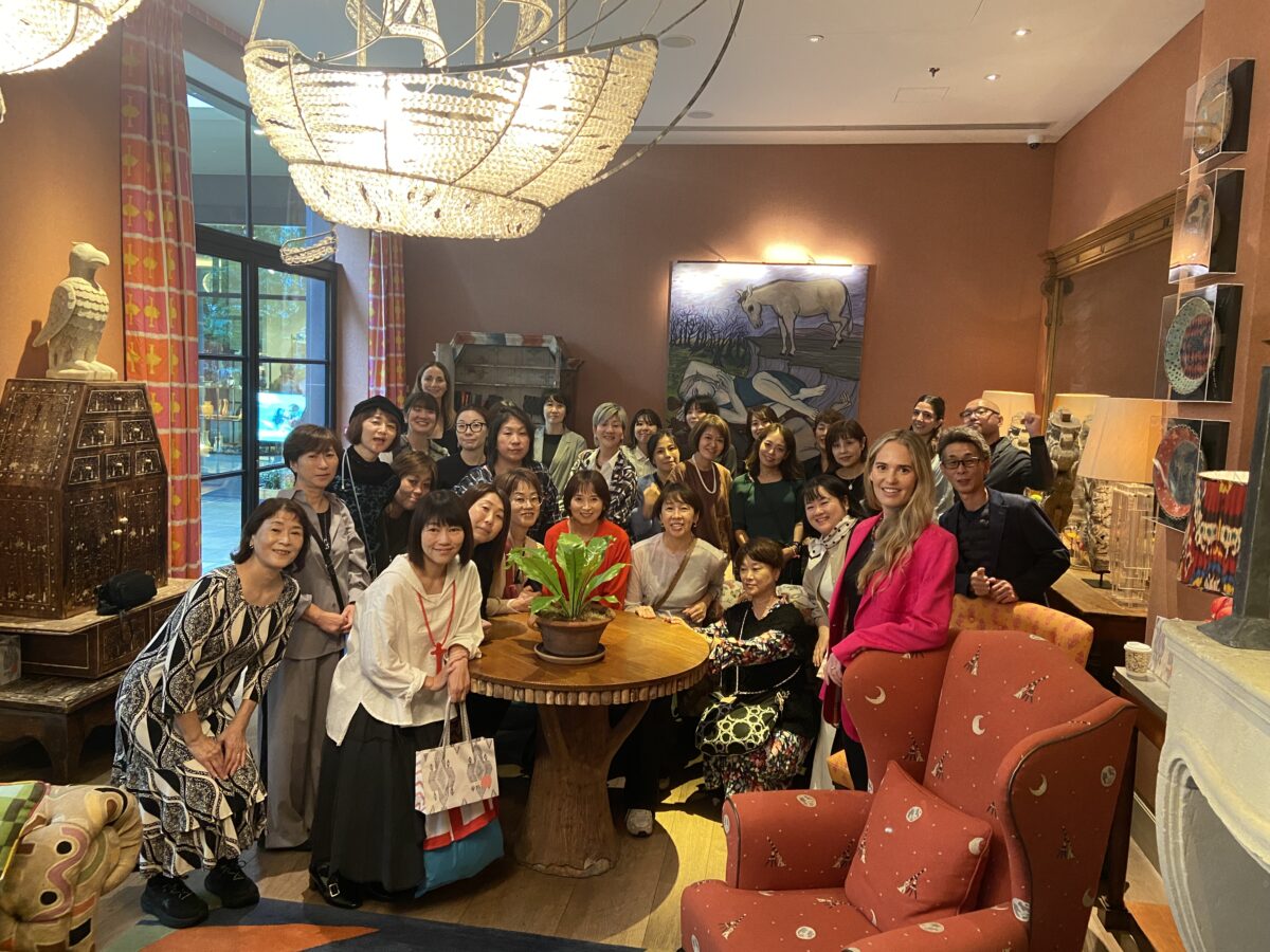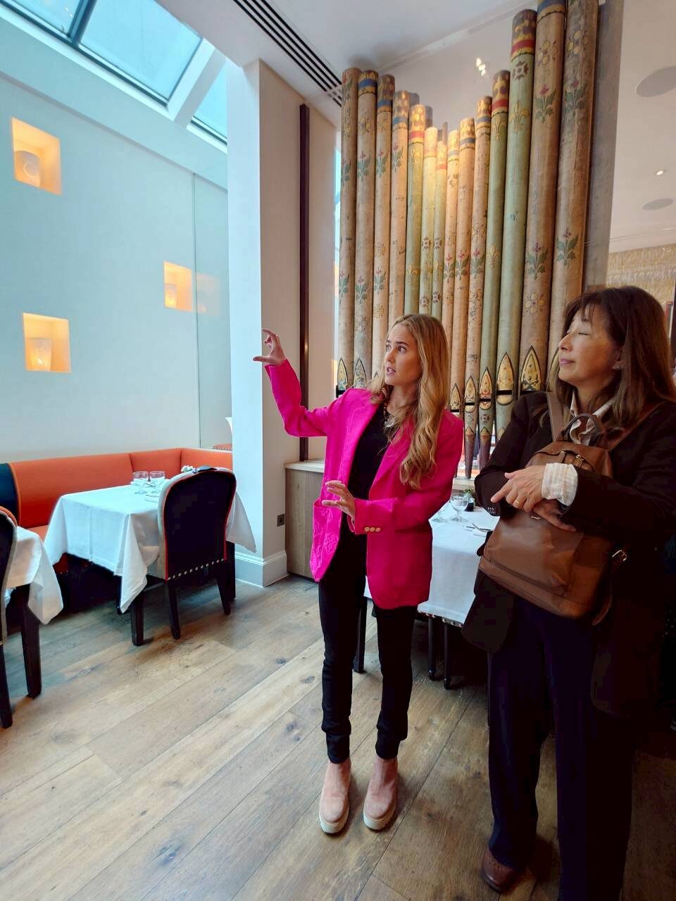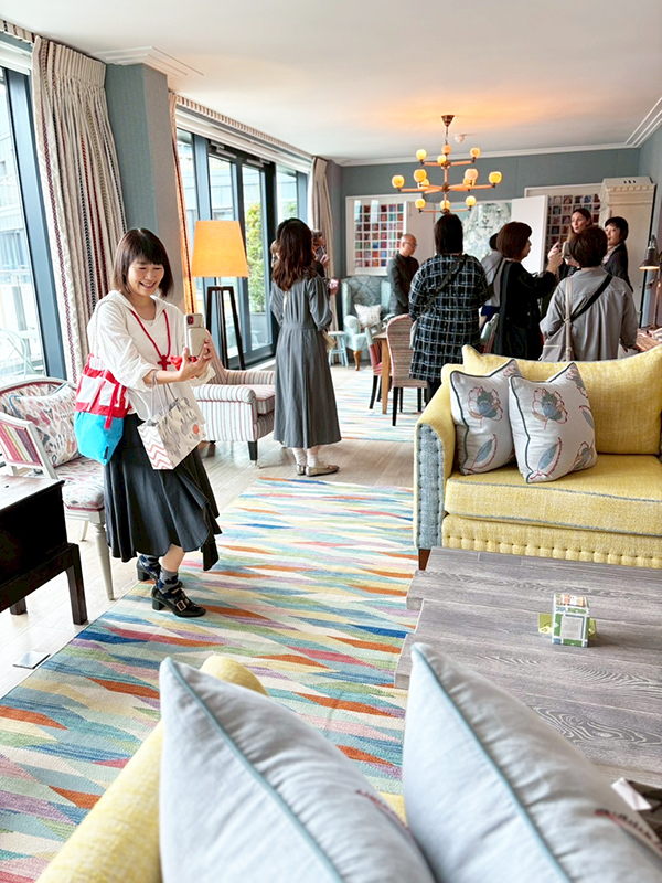 ハムヤードホテルでは、なんとキット・ケンプさんの次女であり、自身もインテリアデザイナー・実業家として活躍されているウィロー・ケンプ(Willow Kemp)さんが、私たちを直接案内してくださいました。鮮やかなピンクのジャケットがとてもお似合いで、そのチャーミングな雰囲気に皆うっとり!