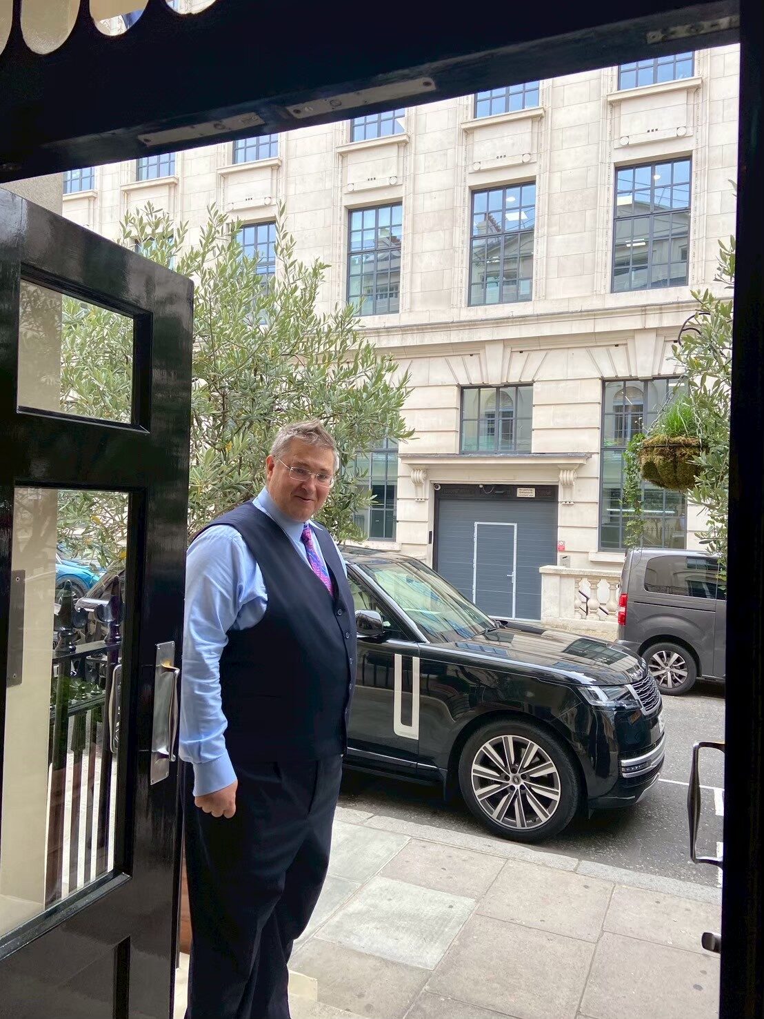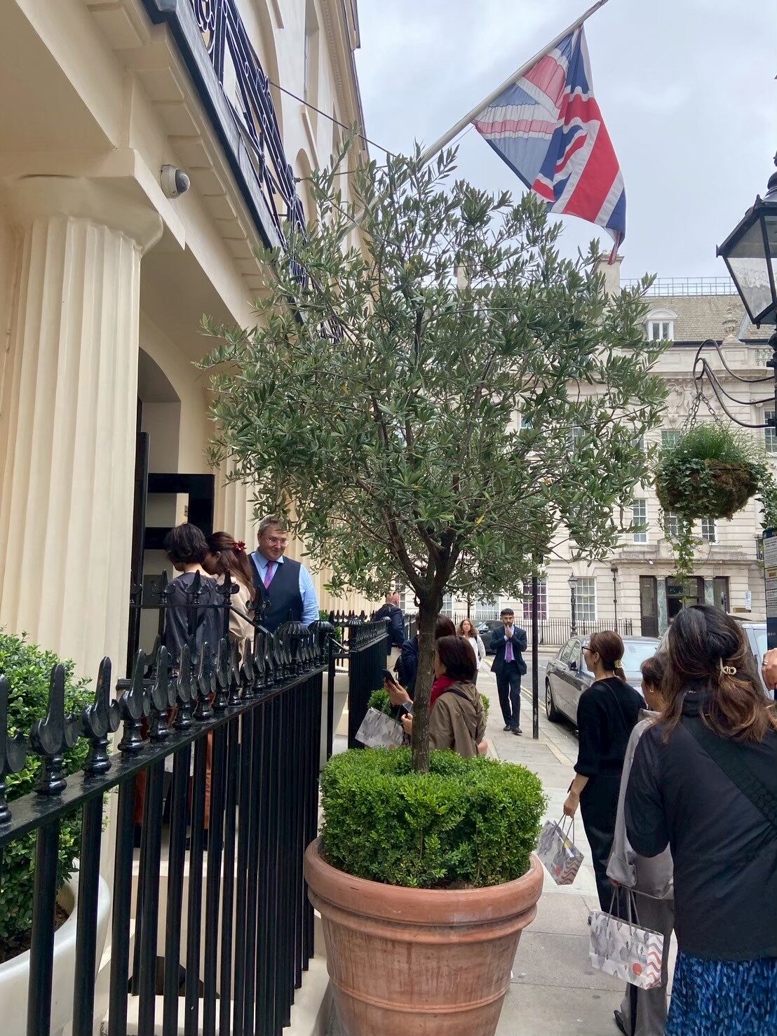 ハムヤードホテルからヘイマーケットホテルまでは歩いてすぐの距離なので、徒歩で移動。ホテルの入り口にはドアマンが立っていて、イギリスの国旗がはためいているのがすごく誇らしげで、素敵ですよね。