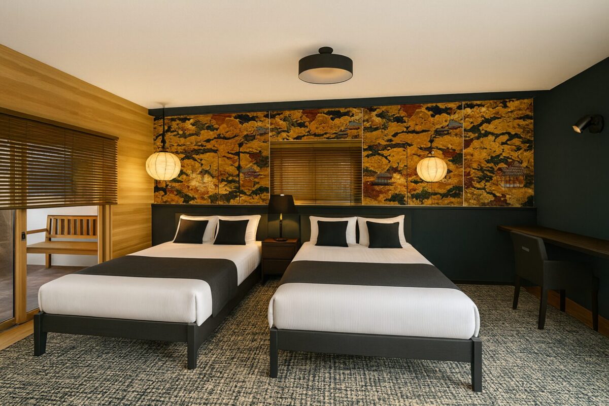 民泊・ゲストハウスもパースでご提案しています。民泊は写真が勝負。予約されそうな雰囲気をこのパースで感じてもらえたらOK!黒とゴールドの勇ましい寝室は、施工がとっても楽しみなのです。