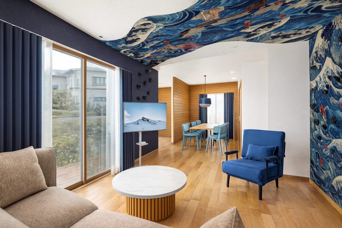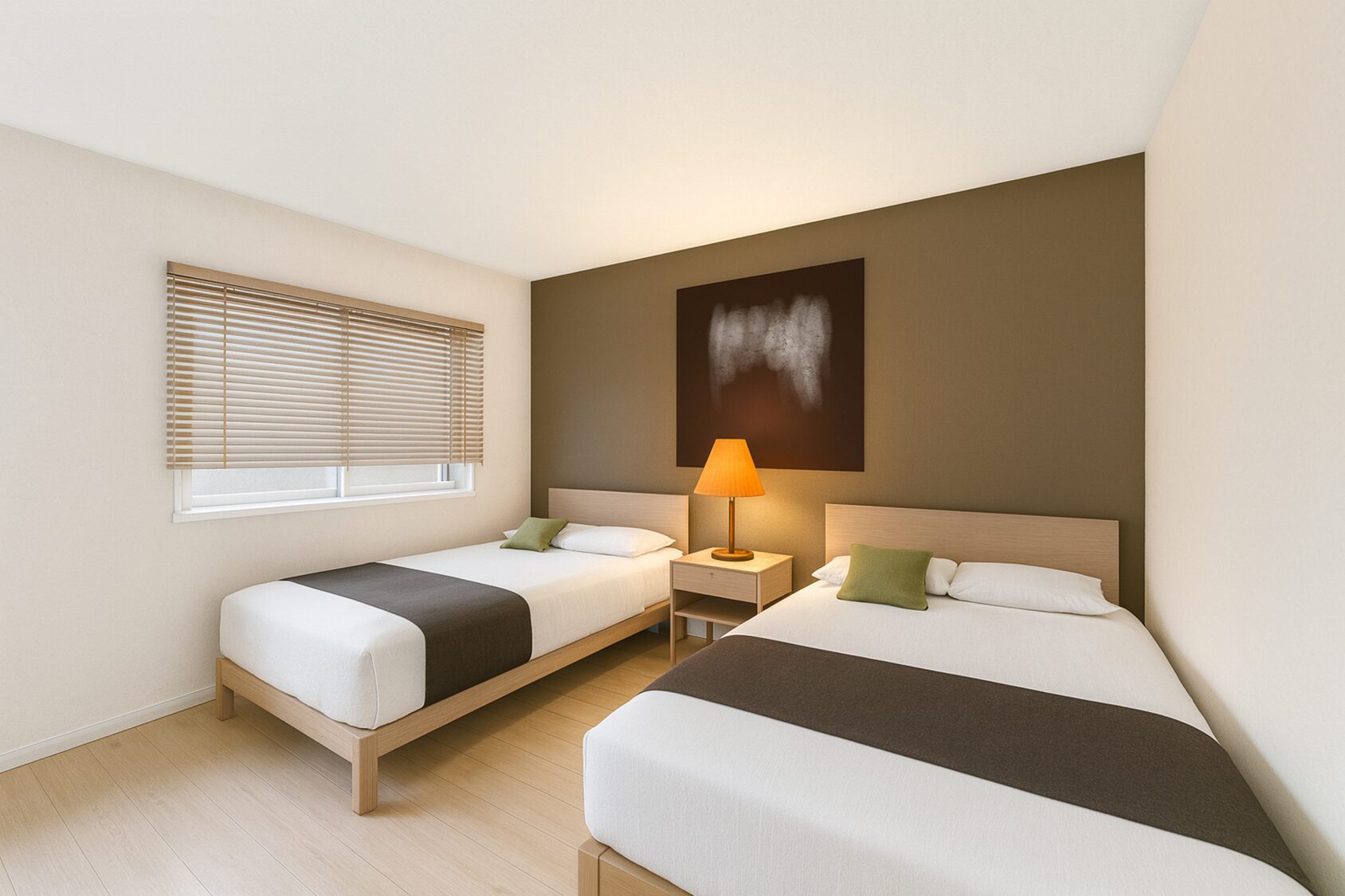 こちらも民泊・ゲストハウスです。個性的な内装で、宿泊予約サイトで目立ちたいっ!でも見た目だけじゃなく、居心地のいい空間をしっかり計画しています。