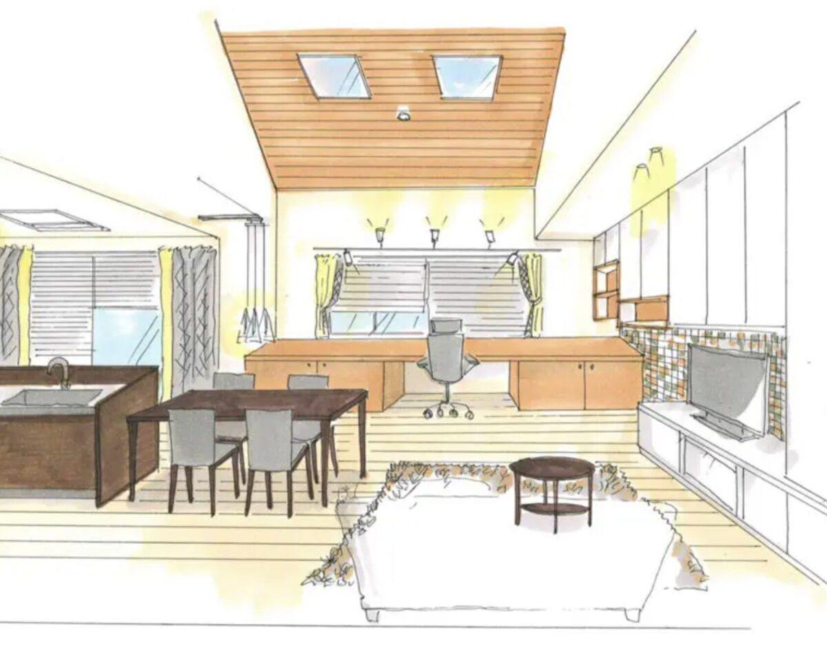 このパースは、数年前に描いたものです。私はもともと手描き派でした。いまでもこのように手で描くこともありますし、うまくはないけど早描きは得意です。手描きには個性が出るよね!味わいも大好きです。